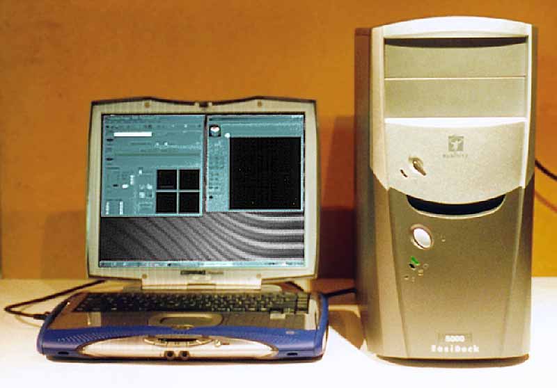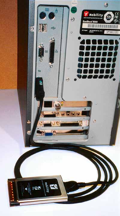 EasiDock 5000. A PC card goes into your notebook; this connects with